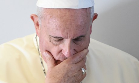 Francis, 80, was standing up in the specially designed vehicle during a procession through the Caribbean city of Cartagena when the vehicle braked sharply.