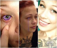 Catt Gallinger, from Ottawa, Canada, decided to get a sclera tattoo, which changes the colour of the whites around your eye. She shared disturbing pictures of her eye, weeks after the treatment she now considers a “massive mistake”.