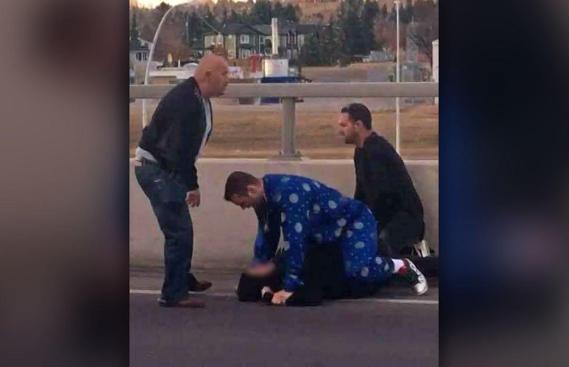 The wrestler said he was driving Sunday night when he spotted a woman crying and hanging off a bridge in Calgary. Smith said he stopped and tried to speak to the woman, but she kept threatening to leap if he got any closer to her.