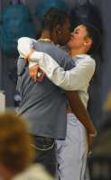 Photographers caught the couple kissing on the lips as Kylie wrapped her arms around Stormi Webster’s dad.