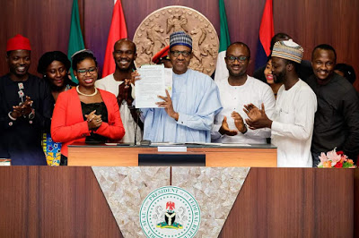 The president signed the bill on Thursday inside the Council Chamber of State House Presidential Villa, in the presence of selected invited youth from across the county.