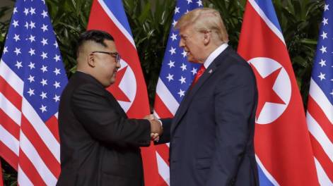 American President, Donald Trump and North Korea’s Supreme leader Kim Jong Un have both just shared a historic handshake at the Capella hotel on Sentosa Island in Singapore.