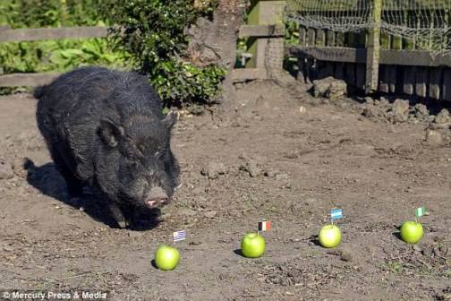 The black micro pig had previously guessed the winner of the 2014 World Cup and the Wimbledon tennis finals by picking apples.