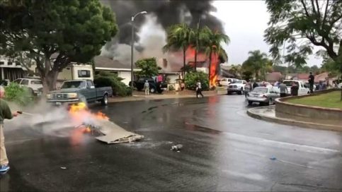 The twin-engine plane came apart and caught fire mid-flight, witnesses told local media, before crashing in Yorba Linda, a suburb of Los Angeles.