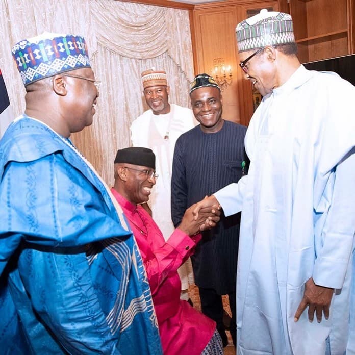 “When we have a Deputy Senate President KNEELING DOWN to greet General Muhammadu Buhari, how can we expect the 9th Senate of the National Assembly to STAND UP to him? The Legislature was created to CHECK the Executive, not to BOW to them. I served under President Goodluck Jonathan. I was Uber loyal to him. I am still ultra loyal to him. But I never knelt down to him. I kneel down to my God. I respect my boss. I won’t kneel down to a President. Sad! Very sad!”, Reno Omokri shared on Instagram with the photo above.