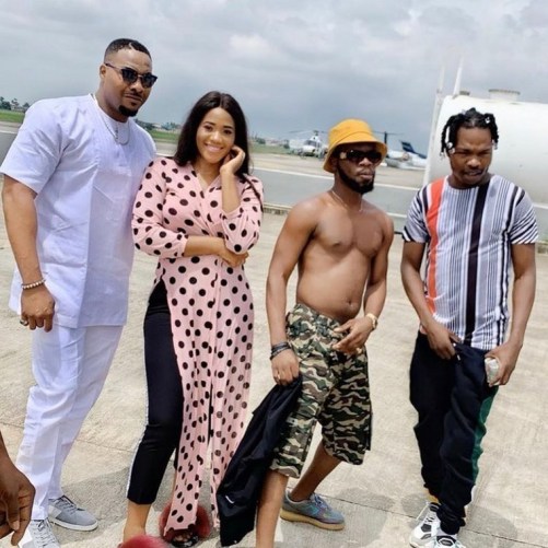 Naira Marley has already shot several scenes. In a particular scene, the singer was spotted chilling on a private jet with several scantily clad models.