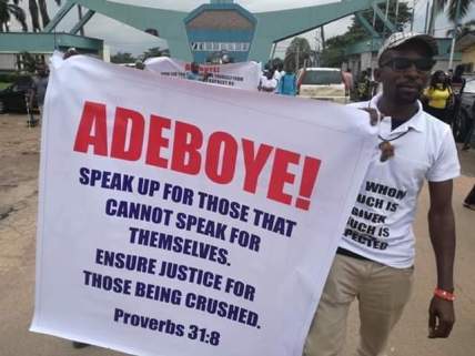 They matched through the camp, carrying placards with inscriptions such as; “Adeboye, speak up for those who cannot speak for themselves”, “Adeboye, would you have kept quiet if Leah was your biological daughter”, among others.