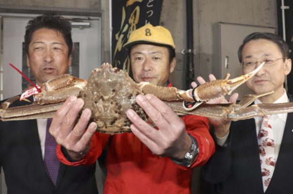 A “five shining star” snow crab was auctioned off in Tottori, Japan for a whopping 5 million yen ($46,000).