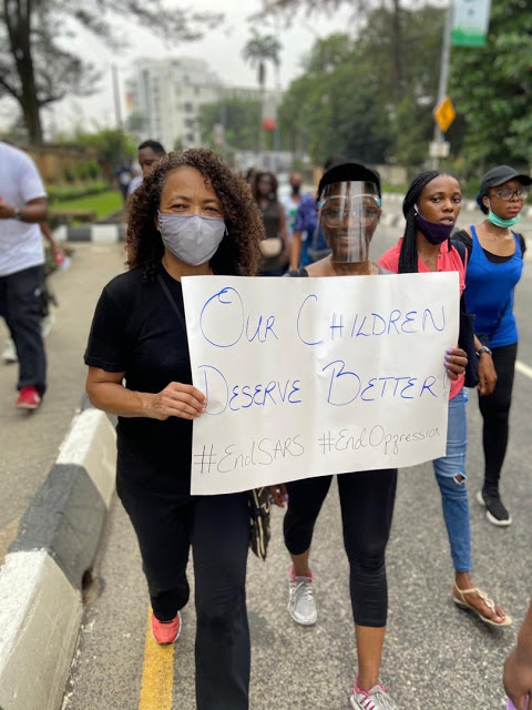 Some mothers on Saturday 17th, 2020 took the streets of Ikoyi, Lagos to protest police brutality saying ”Our children deserve better”. See more photos below…