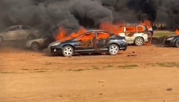 The cars, displayed for sale at a car stand, were set ablaze by alleged thugs hired to disrupt the agitation for comprehensive police reform by #EndSARS protesters. It was gathered that the miscreants had attempted to attack the demonstrators at Apo during their rally on Monday morning. However, the protesters overpowered and repelled them.