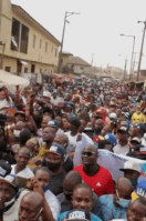 Hundreds of members of the All Progressives Congress in Lagos on Friday crowded into a street in Agege for a sensitisation rally, in clear violation of the state’s COVID-19 law.