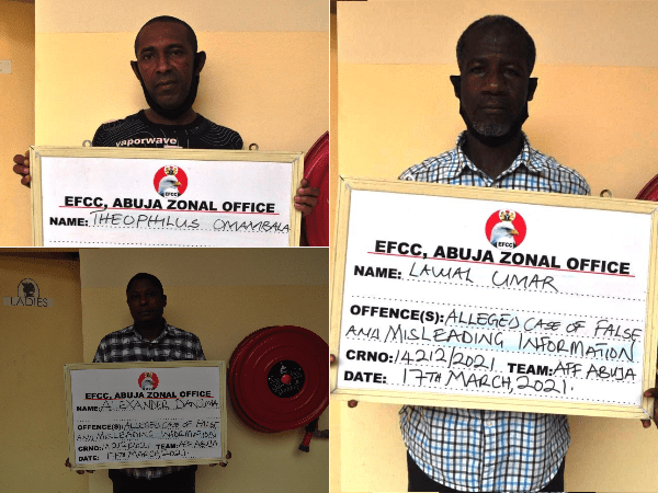 The trio – Lawal Umar, a 45-year-old property agent; Alexander Danjuma, a 43-year-old mechanic and Theophilus Omambala, a 47-year-old engineer allegedly told the EFCC of monies stashed in the residence of one Audu Innocent Ogbe located at Lugbe, a suburb of Abuja.