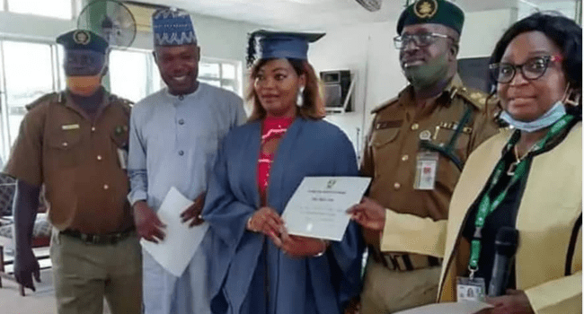 Aside from her, a male inmate, Alegbe Afolabi, was awarded an MSc in Peace and Conflict Resolution.