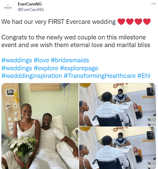 A Nigerian couple got married on the husband’s sick bed in a hospital in Lagos state.