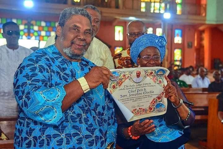 Veteran Nigerian actor, Pete Edochie, and his wife, Josphine, are celebrating their 53rd anniversary as husband and wife. Part of the festivities for their anniversary included the couple having a thanksgiving service in a church in Enugu.