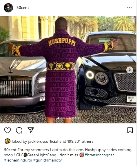 Jackson who is famed for producing hit tv series like Power, Power Book II, Power Book III: Raising Kanan, amongst others, made the announcement on his Instagram page on Wednesday night, writing: “For my scammers I gotta do this one, Hushpuppy series coming soon ! GLG🚦GreenLightGang i don’t miss 🎯#bransoncognac #lecheminduroi #gunitfilmandtv“