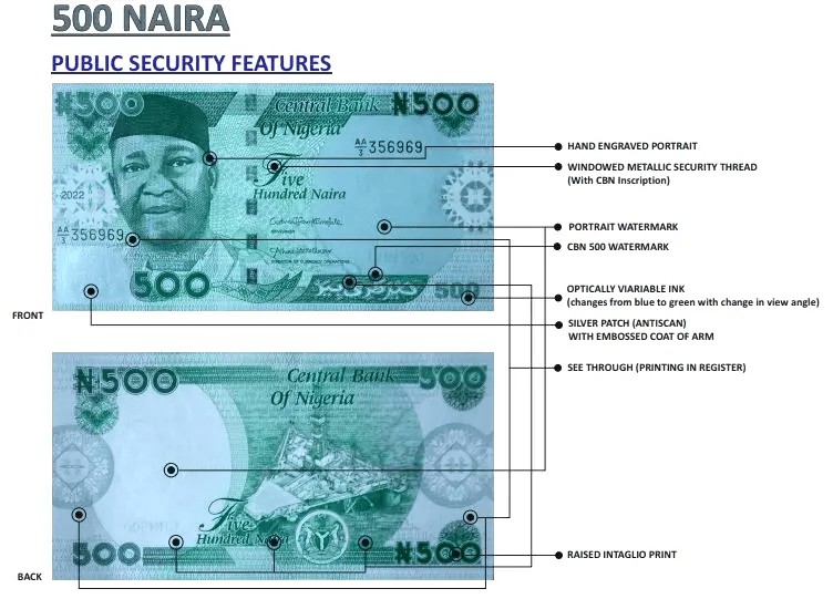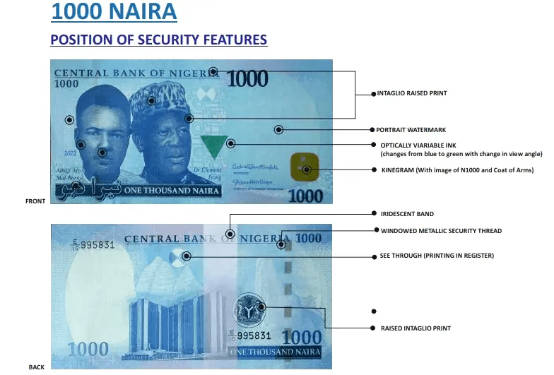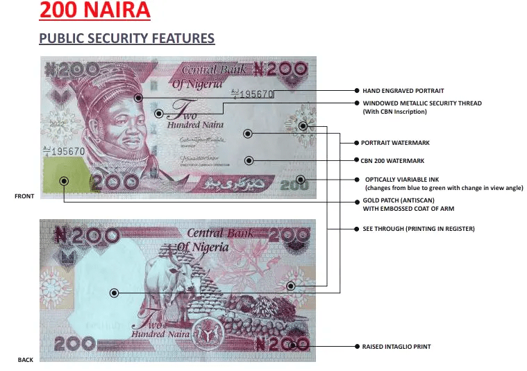 In a bid to protect Nigerians from falling victim of counterfeiters, the Central Bank of Nigeria, CBN, has released details and position of the security features in the new naira notes.