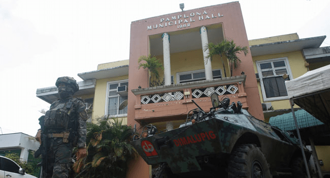 At least six gunmen armed with rifles and wearing military-style uniforms opened fire in the governor’s home in Pamplona municipality in the central province of Negros Oriental.