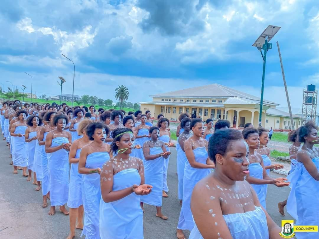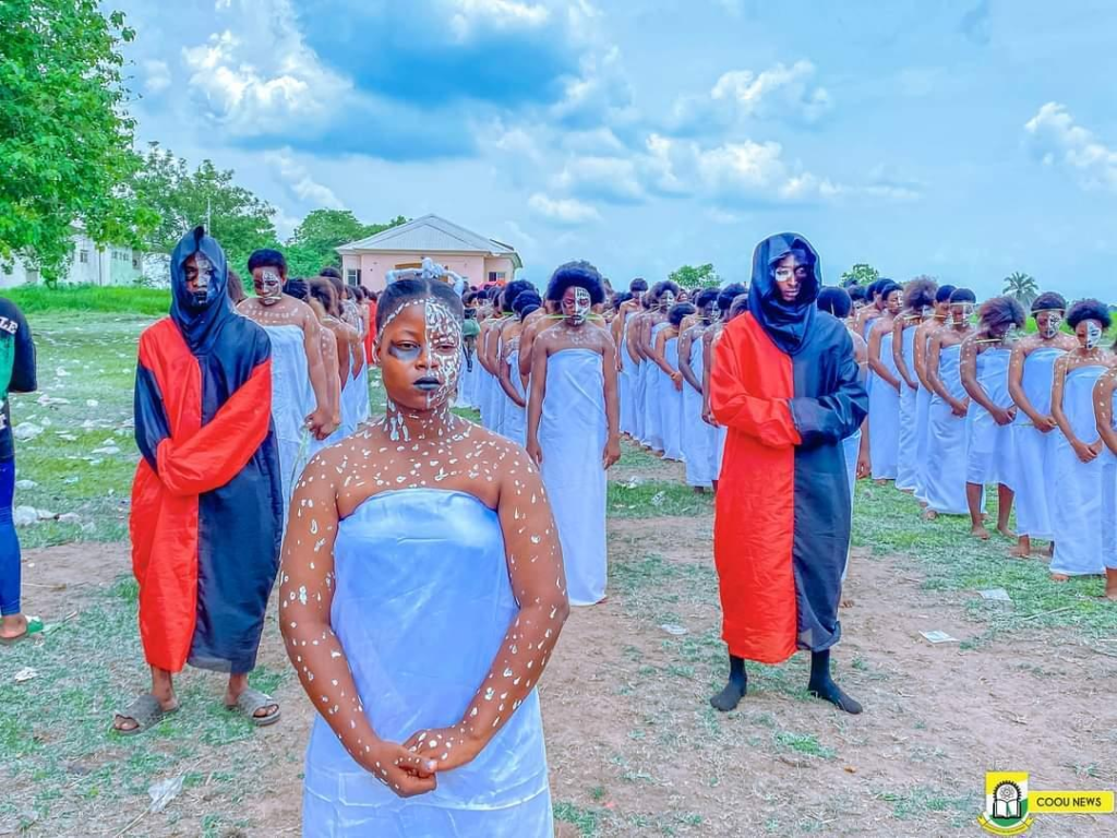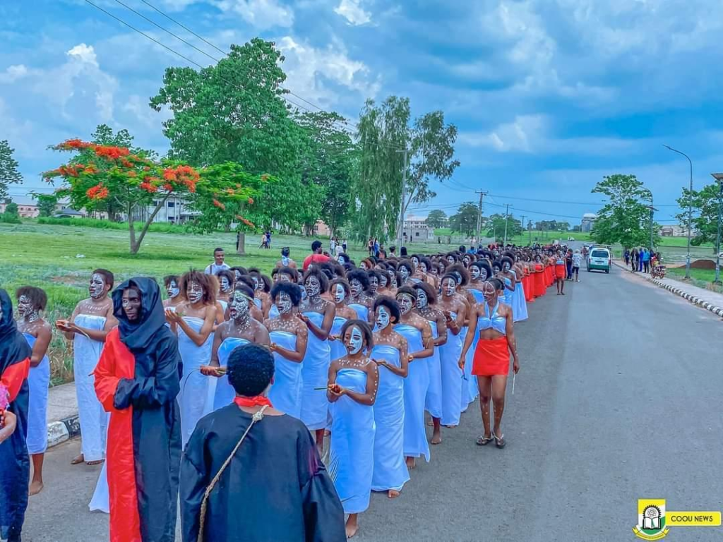 “Congratulations to the 100-level and 200-level students of the Department of Theatre Arts of the Chukwuemeka Odumegwu Ojukwu University Anambra State on their Initiation and Induction into the Department. The Department of Theatre Arts in the university community is known for offering academic programmes and practical training in various aspects of culture and theatre. The Department is seen as a family and today, they had their anticipated initiation. Once again, Congratulations to the Inductees!!”