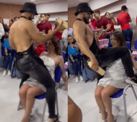 Vivian Polanía was filmed giggling on a chair as a muscular man in an apron gyrated over her, feeding her a willy-shaped waffle at the Court of Justice in Cúcuta, north east of Bogota, Colombia. Several officials whooped as they filmed the saucy scenes with their phones.
