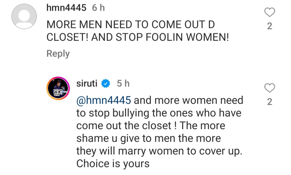 The actor revealed this under a comment section where an internet user urged more men to come out of the closet and stop fooling innocent women in marriage.