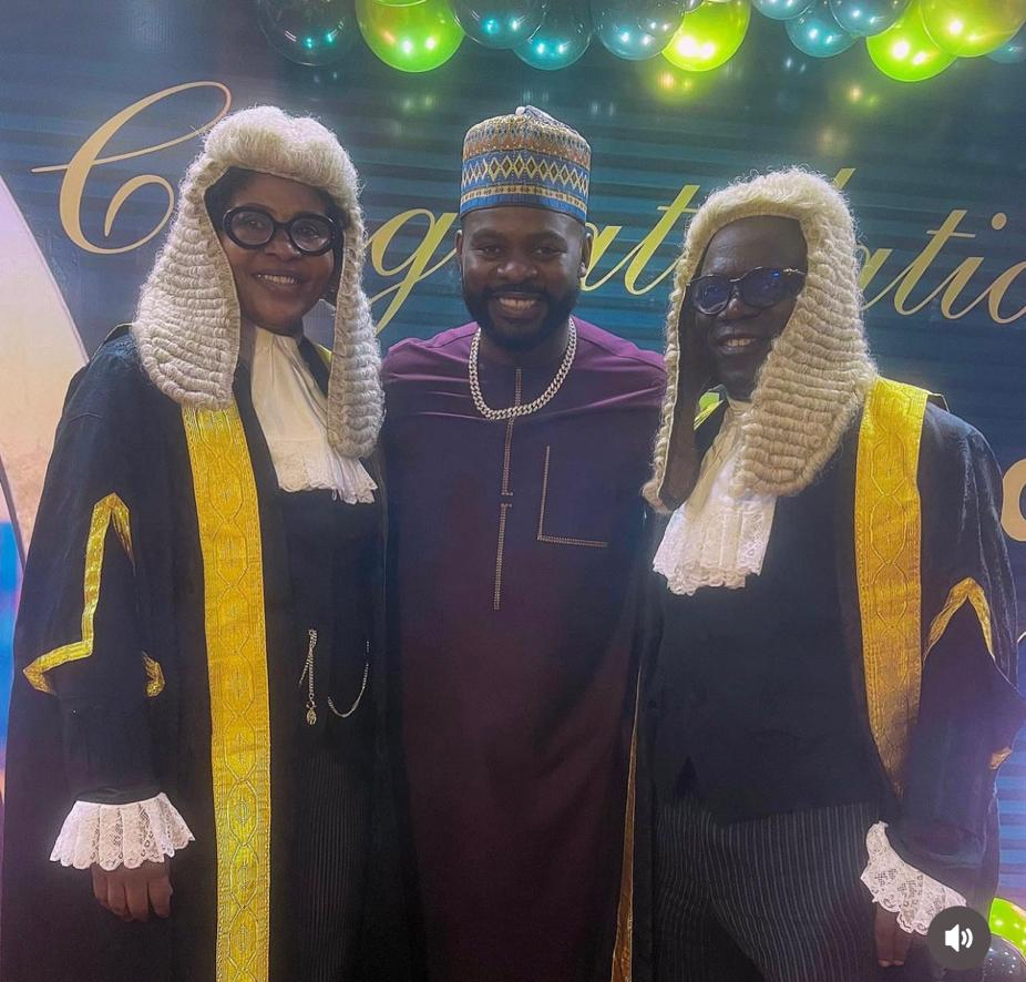 Falz posted a picture of his parents as SANs in their robes and stated: