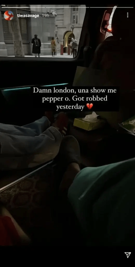 Popular Nigerian singer, Tiwa Savage has been robbed in London, United Kingdom.