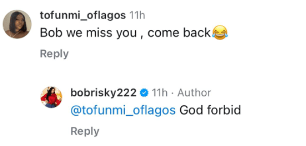 He replied a fan who asked him to return to Nigeria, he bluntly said ‘God forbid’