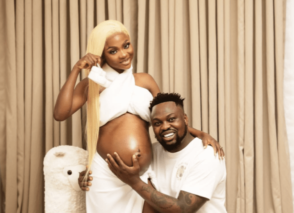 The couple shared a heartwarming Instagram post featuring photos from their maternity shoot and a picture of their baby’s hand resting on Egungun’s, with the child’s name tattooed on his hand.