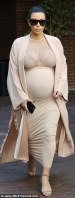 It won’t be long until her second child arrives. And Kim Kardashian is making the most of her curvaceous pregnancy figure, in a series of clinging outfits. The reality star showed off her growing bump as she stepped out in a clinging peach-coloured outfit in Beverly Hills on Sunday…