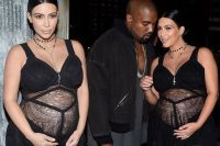 Pregnant Kim Kardashian reveals growing baby bump and huge cleavage (Photos)