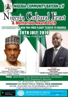 The Nigerian community in Bavaria, German set to recognise the professional, Trailblazers and other achievements of outstanding Nigerians living in Germany, on 20 July. Talking to diamond celebrities, the event organiser, Mr. Emmanuel Onyeme, said that the purpose of creating Nigeria Cultural Feast and Meritorious Awards 2019’ is to appreciate the contributions of the Nigerian […]